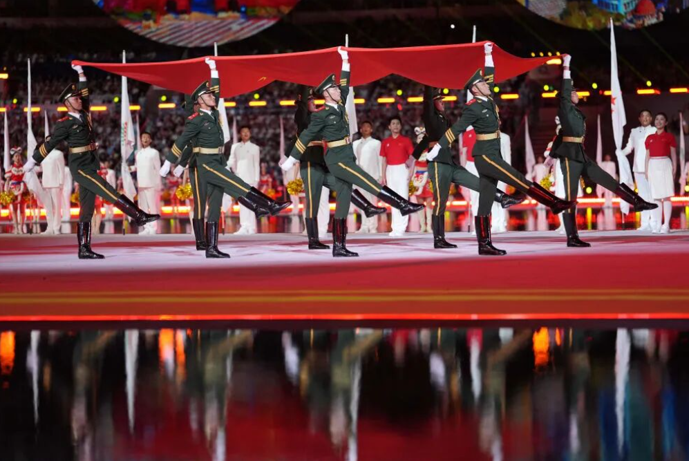 旗手护送中华人民共和国国旗入场。新华社记者 杜宇 摄