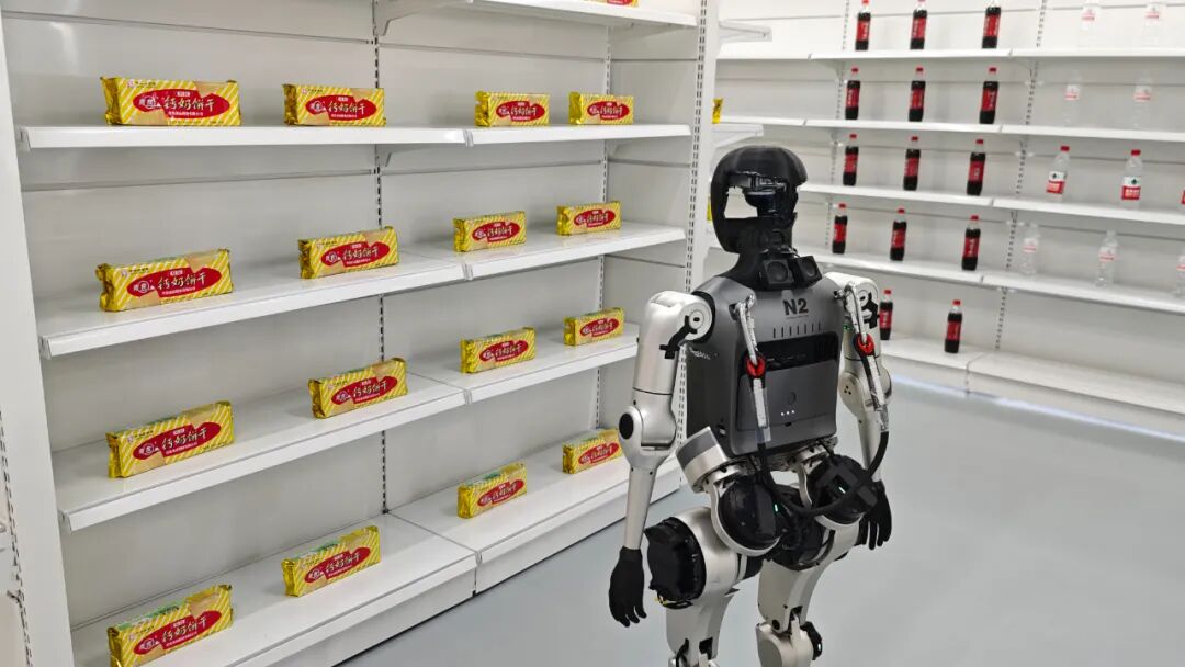 双足人形机器人步履稳健地从A点行至B点,自如地完成转身、挥手问候等动作,还能精准执行开门、取物等日常任务;