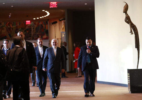 2019年9月25日,在位于纽约的联合国总部,伊朗外长扎里夫(中)准备出席会议。新华社/路透