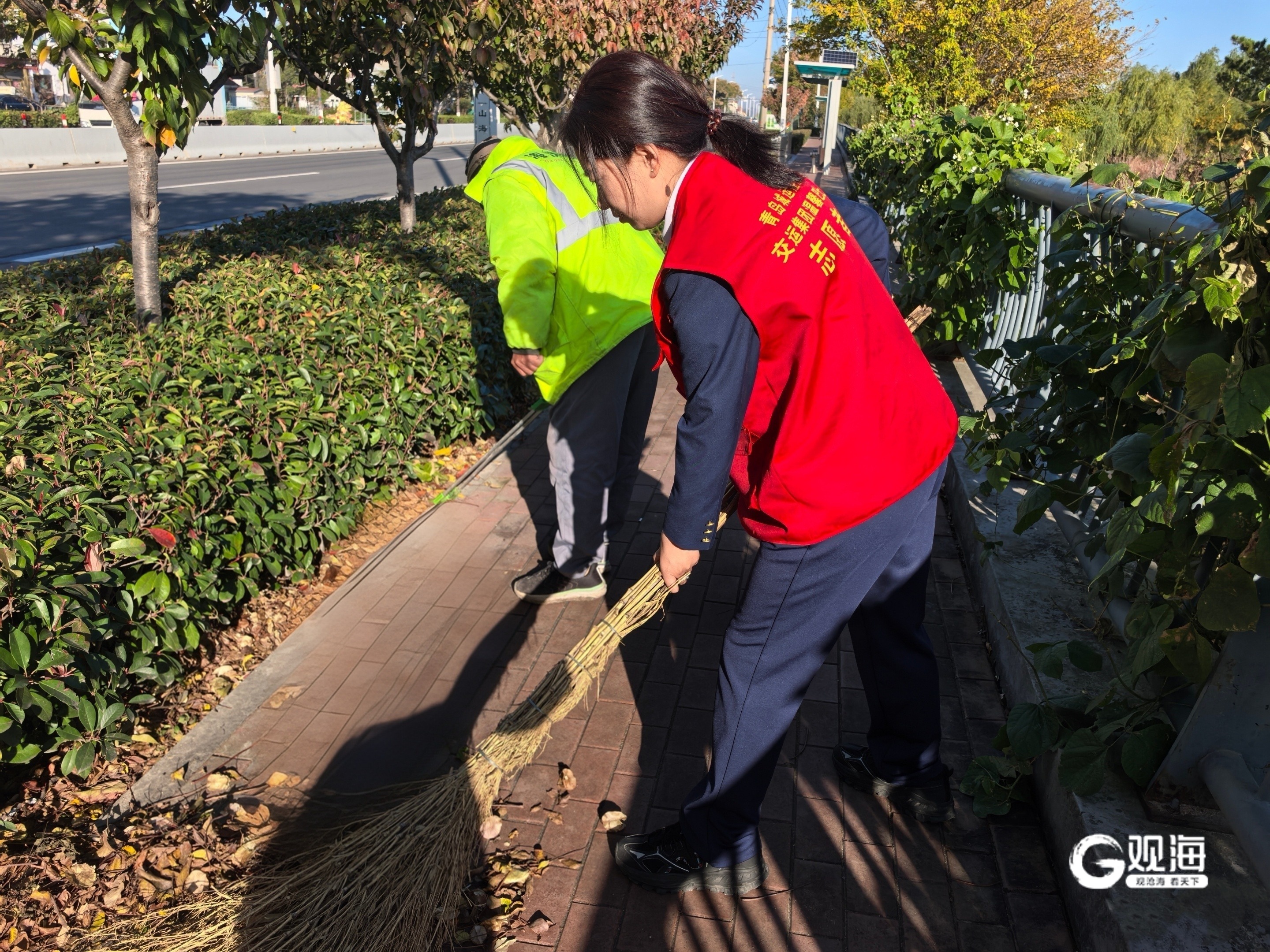 此外, 兴达分公司的志愿者们在温馨巴士站点周边、沿线人行道及绿化带区域,主动加入环保队伍,捡拾散落垃圾、分类归集废弃物,帮助环卫工人完成路面清洁工作。经过一番忙碌,站点周边及沿线道路变得整洁有序,有效减轻了环卫工人的劳动负担。温馨巴士“馨飞扬”青年志愿者忙碌的身影与湛蓝的海、金黄的叶相映,构成了岛城秋日里一道靓丽的文明风景线。