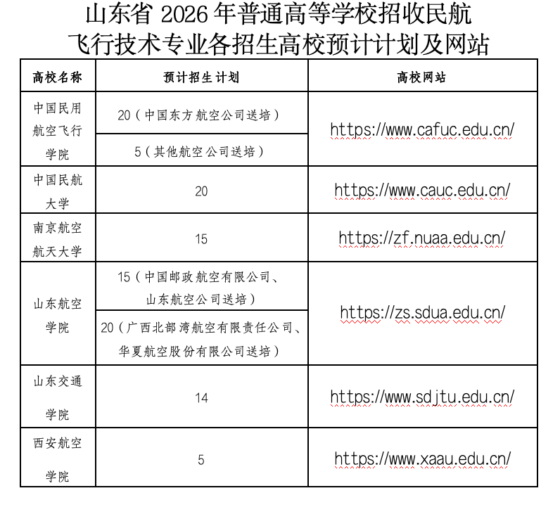 青岛日报社/观海新闻11月11日讯 今天,山东省教育招生考试院发布2026年民航招飞通知。2026年中国民用航空飞行学院、中国民航大学、南京航空航天大学、山东航空学院、山东交通学院和西安航空学院等6所学校在山东省有招飞计划,合计招生114人。