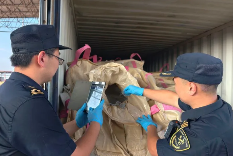 该批进口货物申报品名为“炼钢促进剂”。海关关员现场查验时,发现货物为灰色粉末和大小形状不规则颗粒的混合物,部分混有金属杂物,疑似固体废物,随即取样送检。经专业机构鉴定,该批货物为再生铝熔炼过程中产生的铝灰渣或扒渣并掺杂其他杂物,属于国家禁止进口的固体废物,共计120吨。目前,该批货物已退运出境。