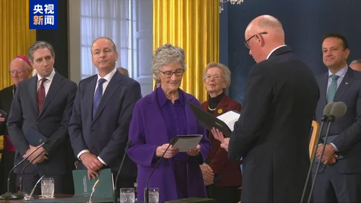 当地时间11月11日,爱尔兰新任总统凯瑟琳·康诺利的就职典礼在爱尔兰都柏林城堡举行。康诺利宣读并签署声明,正式就职爱尔兰总统。