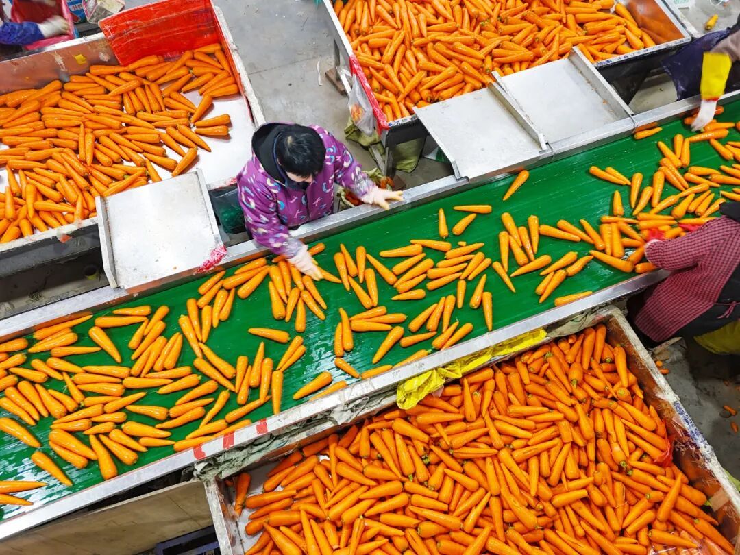 莱西市店埠镇后屯村的村民在对胡萝卜进行清洗、分装。张进刚 摄