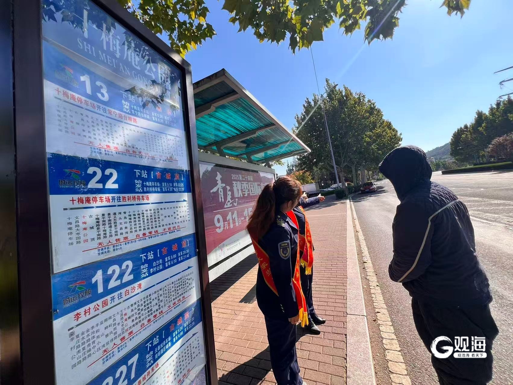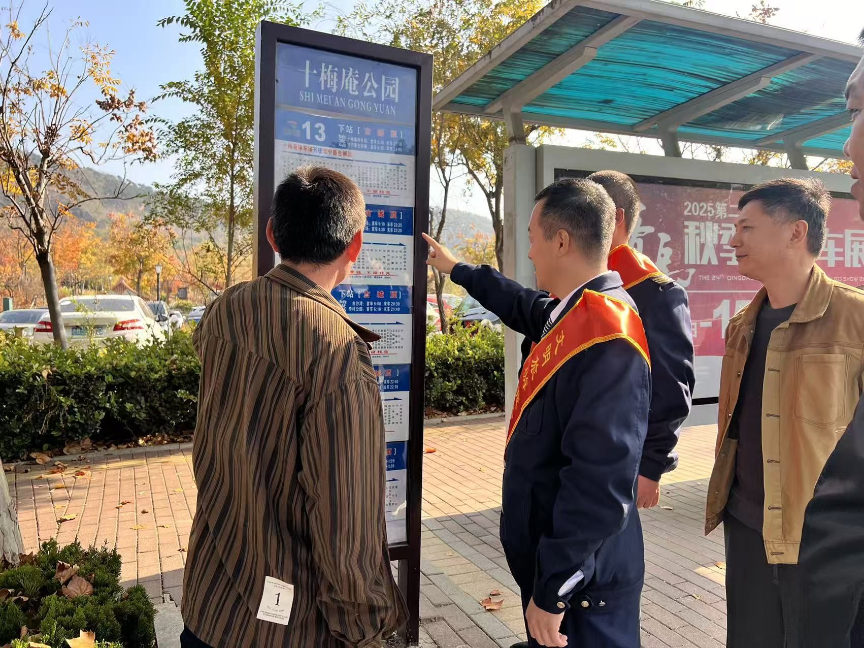 青岛日报社/观海新闻11月13日讯 11月9日,青岛城运控股公交集团李沧巴士第十分公司来到十梅庵公园车站开展“文明旅游 我给大家当向导”志愿服务活动,为前往十梅庵公园赏秋的乘客和市民提供贴心指引,成为秋日里一道温暖的风景线。