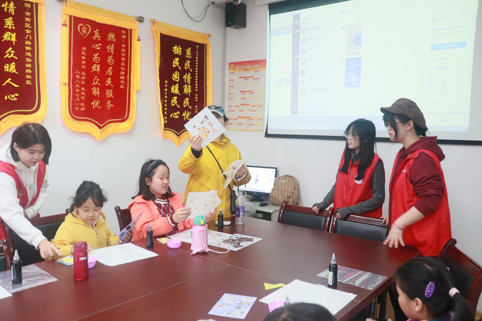 豆染作为中国传统植物染色工艺,以天然黄豆为原料,色彩温润柔和,操作过程充满探索乐趣,契合儿童天然的好奇心与创造力。近期,仙游路社区联合青岛科技大学传媒学院“小漫姐姐”志愿服务队开展“和美仙游”公益课堂——“指尖生花 豆韵润心”非遗手工活动,让孩子在触摸自然、动手创作中释放天性,收获成就感,实现“以艺养心、以美润心”的目标。
