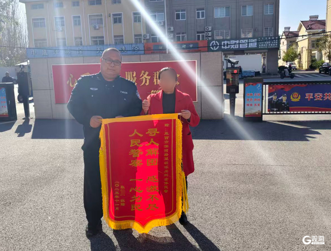 张女士和家人对民警的耐心帮助表示非常感激,11月11日,专程将一面印有“寻人解困感激不尽 人民警察一心为民”的锦旗送到望城派出所。