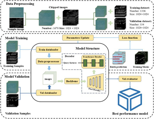 一是识别精度的跨越式提升。团队采用Swin-Transformer编码器搭建语义分割模型,有效解决了传统卷积神经网络“感受野受限、难以捕捉全局上下文信息”的技术瓶颈。该模型基于自注意力机制,能够充分关联影像中的全局特征与局部细节,精准识别出光学反射特征弱、纹理信息不明显的牡蛎养殖筏,即使在海浪、云层、光照变化等复杂干扰条件下,仍能保持稳定的识别性能。在测试数据集验证中,该模型的提取精度高达88%,显著优于UNet等传统深度学习模型,为单个养殖设施的精准定位奠定了技术基础。