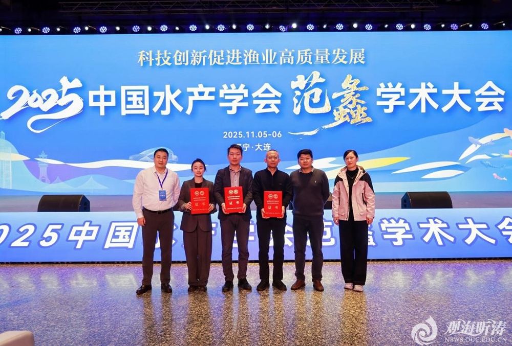 团队参加2025年中国水产学会范蠡学术大会并上台领奖(左三为刘阳)