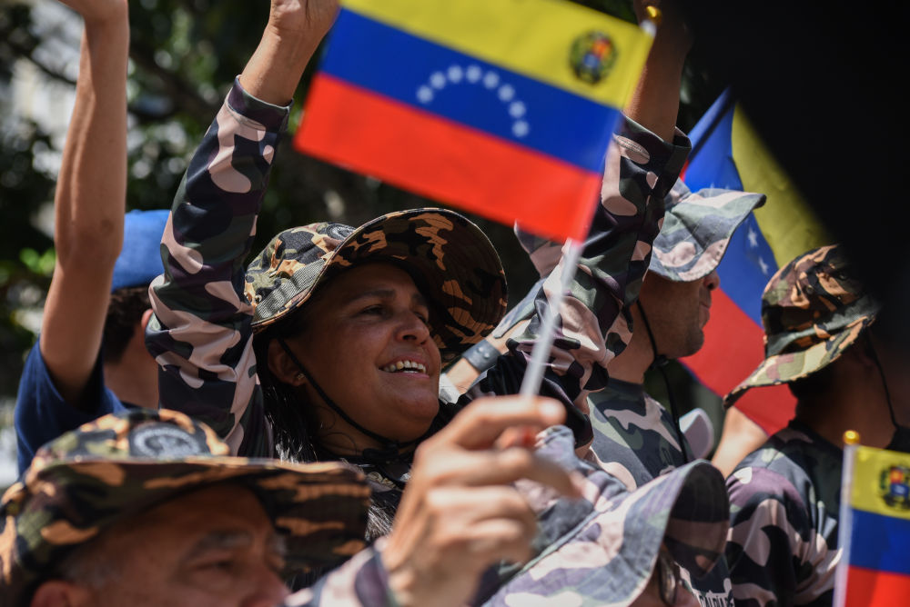 10月4日,在委内瑞拉首都加拉加斯的玻利瓦尔广场,玻利瓦尔民兵组织成员参与全国特别军事演习。新华社发(马科斯·萨尔加多 摄)