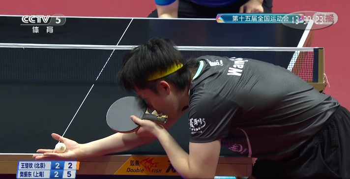 △第一局比赛,王楚钦先胜一局