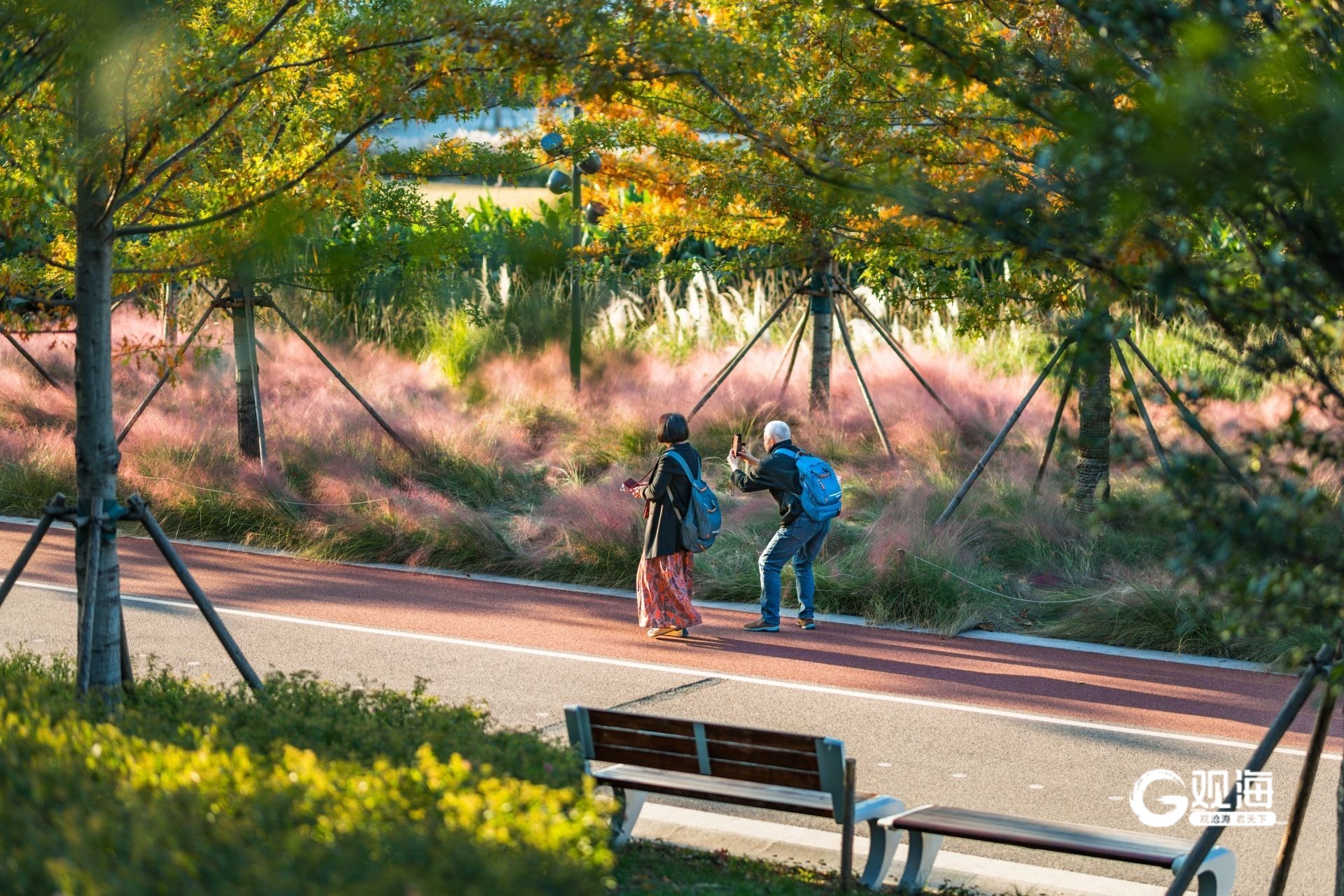 居民边散步边拍照打卡。