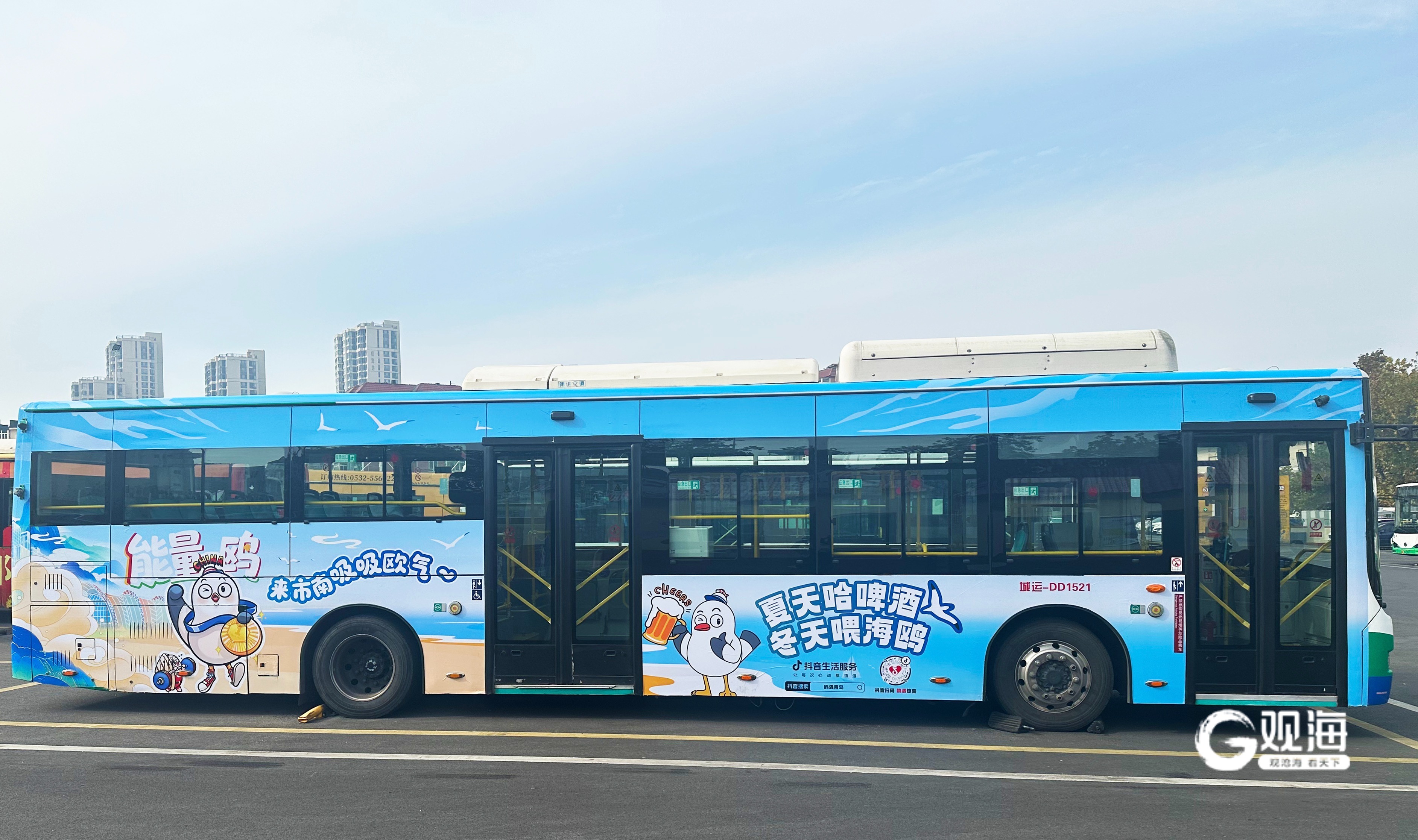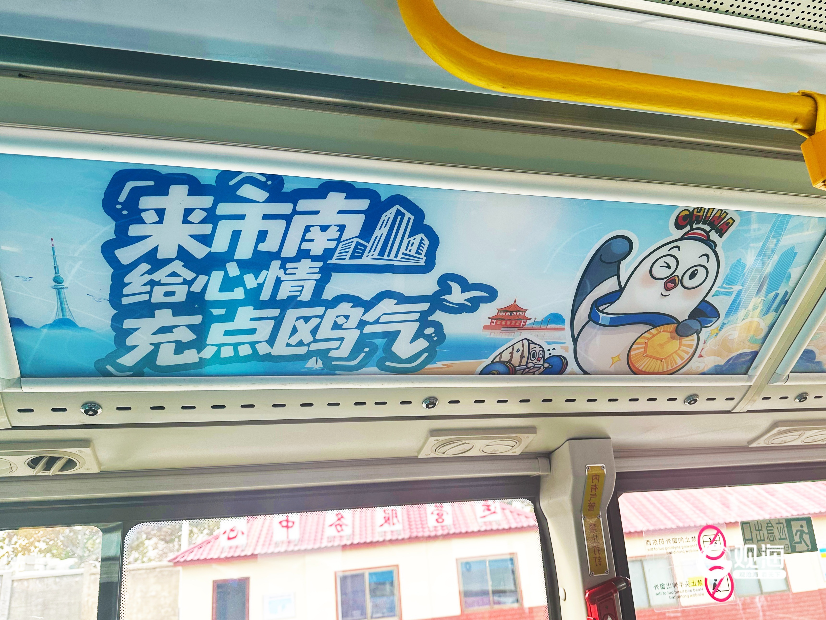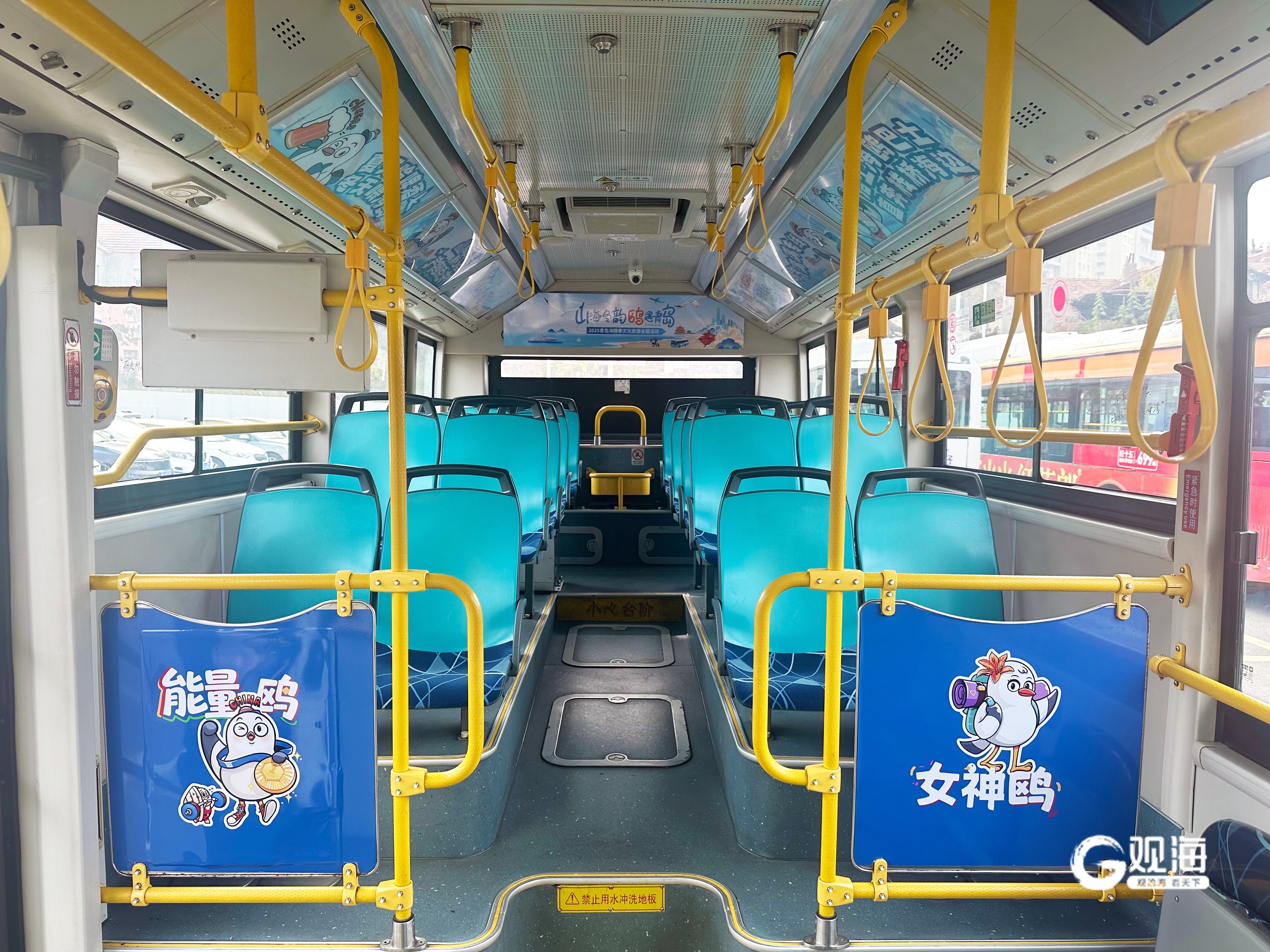 车身外侧,可爱的海鸥图案与栈桥、五四广场等城市地标精心绘就,蓝白为主的配色与青岛的碧海蓝天相映成趣,充满创意的设计让巴士成为街头一道亮眼的“流动风景”:车厢内部更是细节满满,电子显示屏循环播放“最美海湾 鸥遇青岛”主题画面,宣传栏、宣传板等角落均融入海鸥元素涂装,每一处细节都在静静诉说着青岛与海鸥的冬日故事,让乘客仿佛置身于一座温馨的“海鸥主题展厅”。