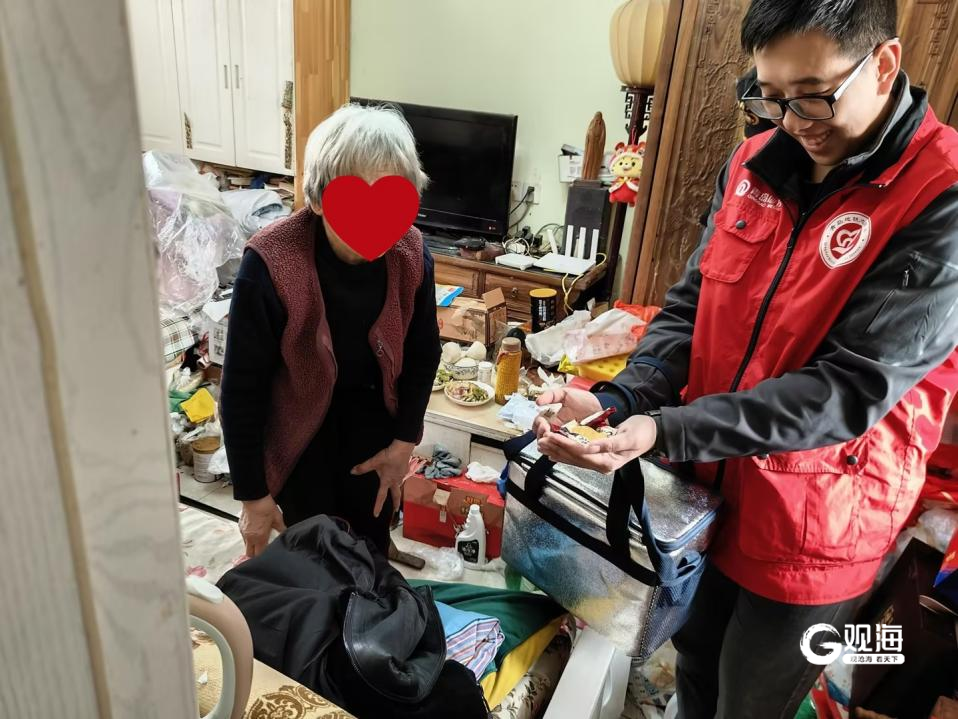 楼道里光线微暗,老旧的扶手被磨得发亮。刘嘉宁提着保温袋刚进楼道,门“吱呀”一声打开了,“算着时间你们差不多该来了”81岁的冯奶奶早已在门口守候,眼角堆起细密的笑纹。刘嘉宁走到里屋,熟练地腾出桌面一角,将热乎的饭菜盛在盘子里。另一边,冯奶奶转身在柜子里翻找起来。“我记着这儿还有糖果……”她一边在抽屉里摸索,一边喃喃自语,当终于找到糖果时,她欣慰地笑了,将糖果塞进刘嘉宁手中:“你们对我这么好,这点心意一定要收下。”。
