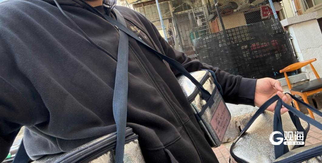 张书杰“挂满”保温饭盒走在送餐路上