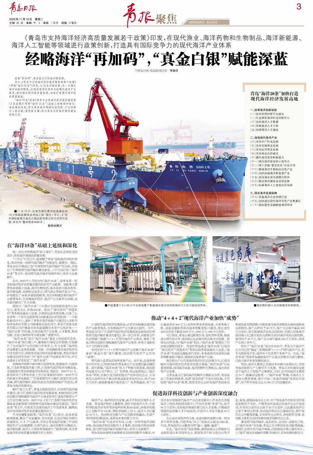 “海洋20条”是在《青岛市支持海洋经济高质量发展15条政策》(简称“海洋15条”)基础上的延续和深化。该政策的印发,将为青岛海洋领域科技创新、产业培育注入新动能、提供新支撑,助力青岛当好海洋强国建设的排头兵。