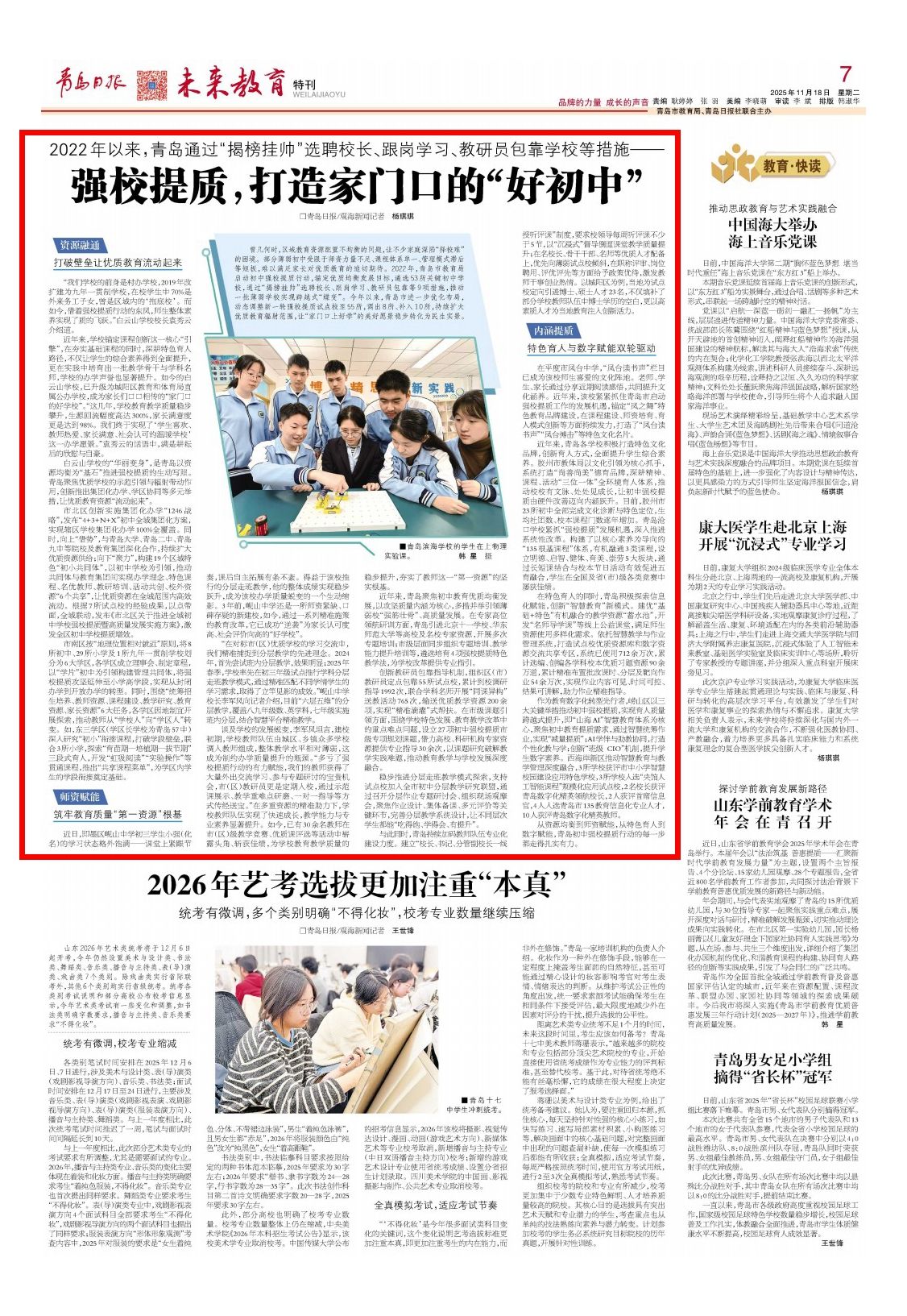 曾几何时,区域教育资源配置不均衡的问题,让不少家庭深陷“择校难”的困境。部分薄弱初中受限于师资力量不足、课程体系单一、管理模式滞后等短板,难以满足家长对优质教育的迫切期待。2022年,青岛市教育局启动初中强校提质行动,锚定优质均衡发展目标,遴选53所关键初中学校,通过“揭榜挂帅”选聘校长、跟岗学习、教研员包靠等9项措施,推动一批薄弱学校实现跨越式“蝶变”。今年以来,青岛市进一步优化布局,动态调整新一轮强校提质试点校至55所,调出8所、补入10所,持续扩大优质教育辐射范围,让“家门口上好学”的美好愿景稳步转化为民生实景。