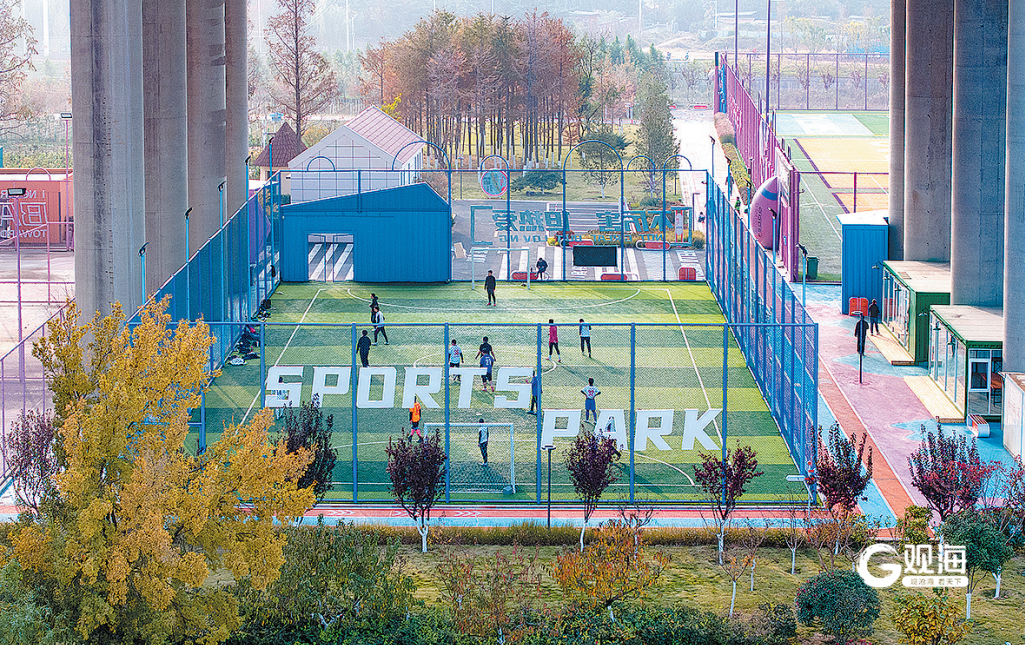 在橙岛时尚体育公园,跃动的身影为桥下空间注入蓬勃朝气。刘栋 摄