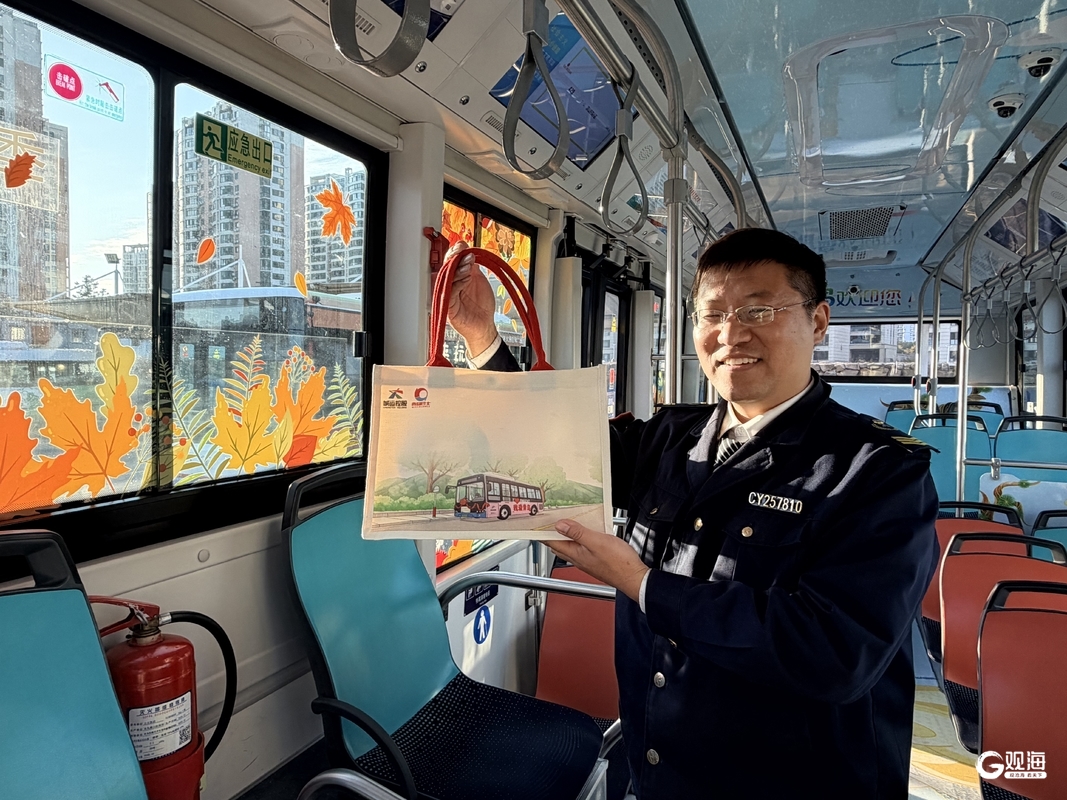 主题车厢带来视觉惊喜的同时,配套推出的文创礼品与线上打卡活动,则进一步点燃了市民的参与热情。崂山巴士公司精准把握当下人们热爱分享的特点,发起了“环浮山秋日打卡季”互动活动。乘客只需在乘坐环浮山公交或游览浮山时,拍摄沿途美景,并将作品发布至小红书或抖音平台,添加话题#环浮山秋日打卡季#环浮山公交,集满10个赞后,即可前往崂山巴士第四分公司领取一份精心设计的文创手提包。