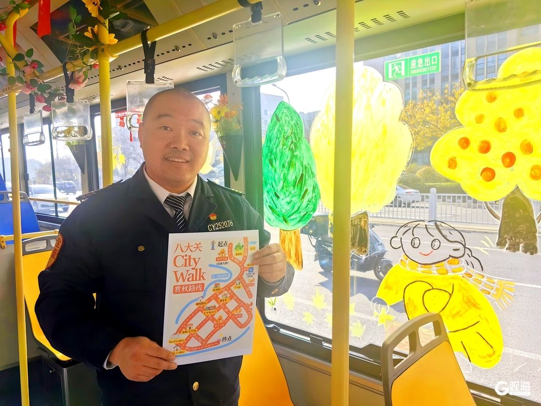 同样引人注目的还有26路“一叶知秋”主题车。作为赏秋观光线路,车厢车窗上贴满了生动有趣的“捡秋”贴纸及八大关、中山公园等秋景最佳观赏攻略。“岛城已进入深秋时节,近日气温回升,大家可以乘坐这趟主题车奔赴一场‘秋日约会’。”公交集团市南巴士四分公司志愿者表示,希望每位乘客都能在这趟旅程中找到属于自己的秋日记忆。