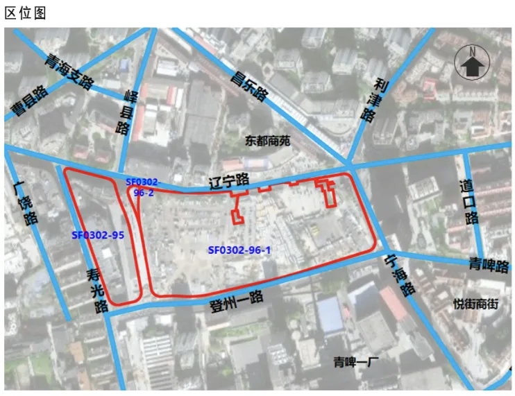 经过对比,此次出让的市北区辽宁路以南、宁海路以西地块,土地面积、规划建面、容积率、建筑高度等指标均与规划调整后的SF0302-96-1地块吻合,应为大悦城二期。