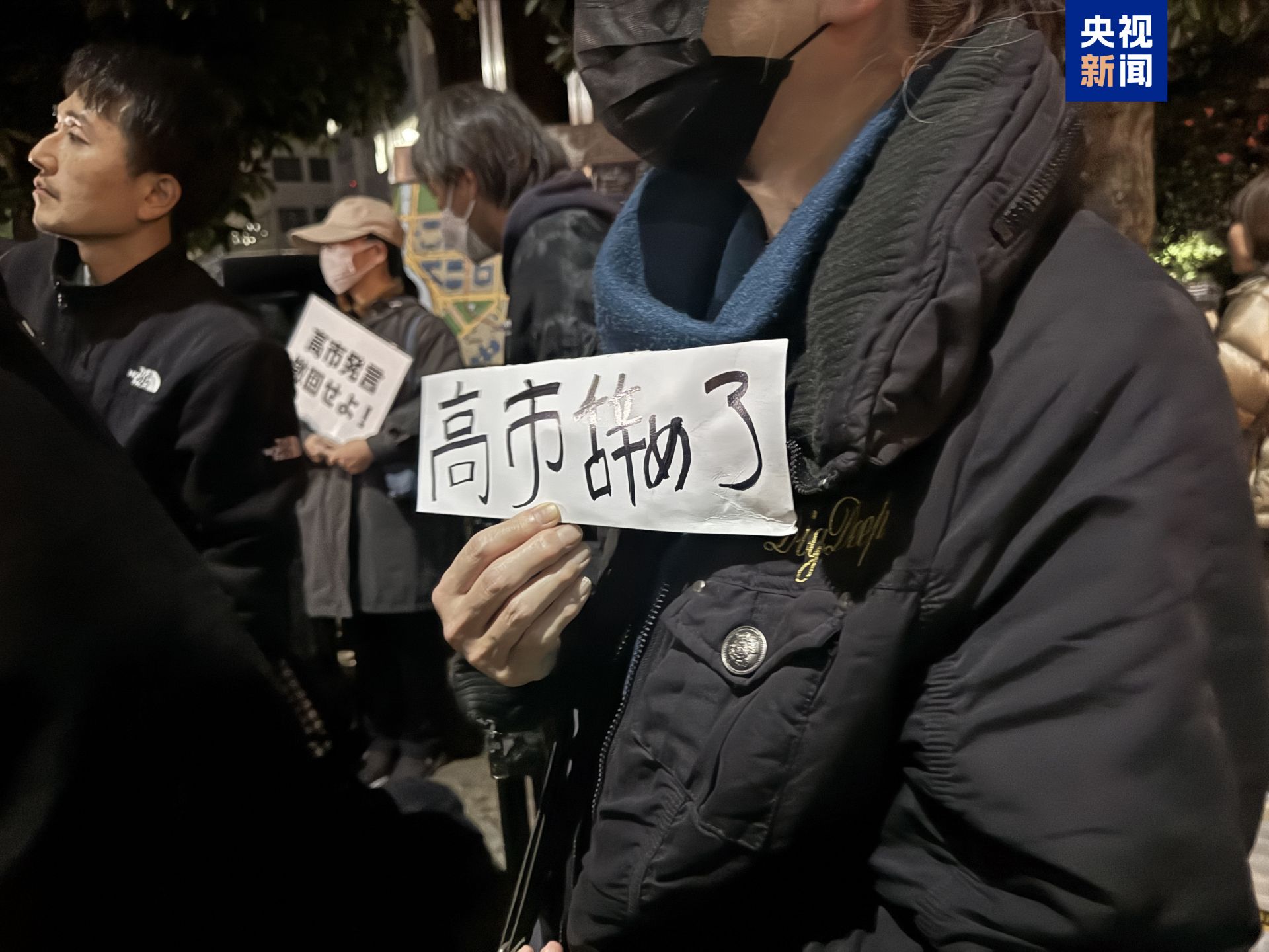 当地时间21日晚,数百名日本民众聚集在位于东京的首相官邸前,自发进行集会,要求日本首相高市早苗撤回涉台错误言论。