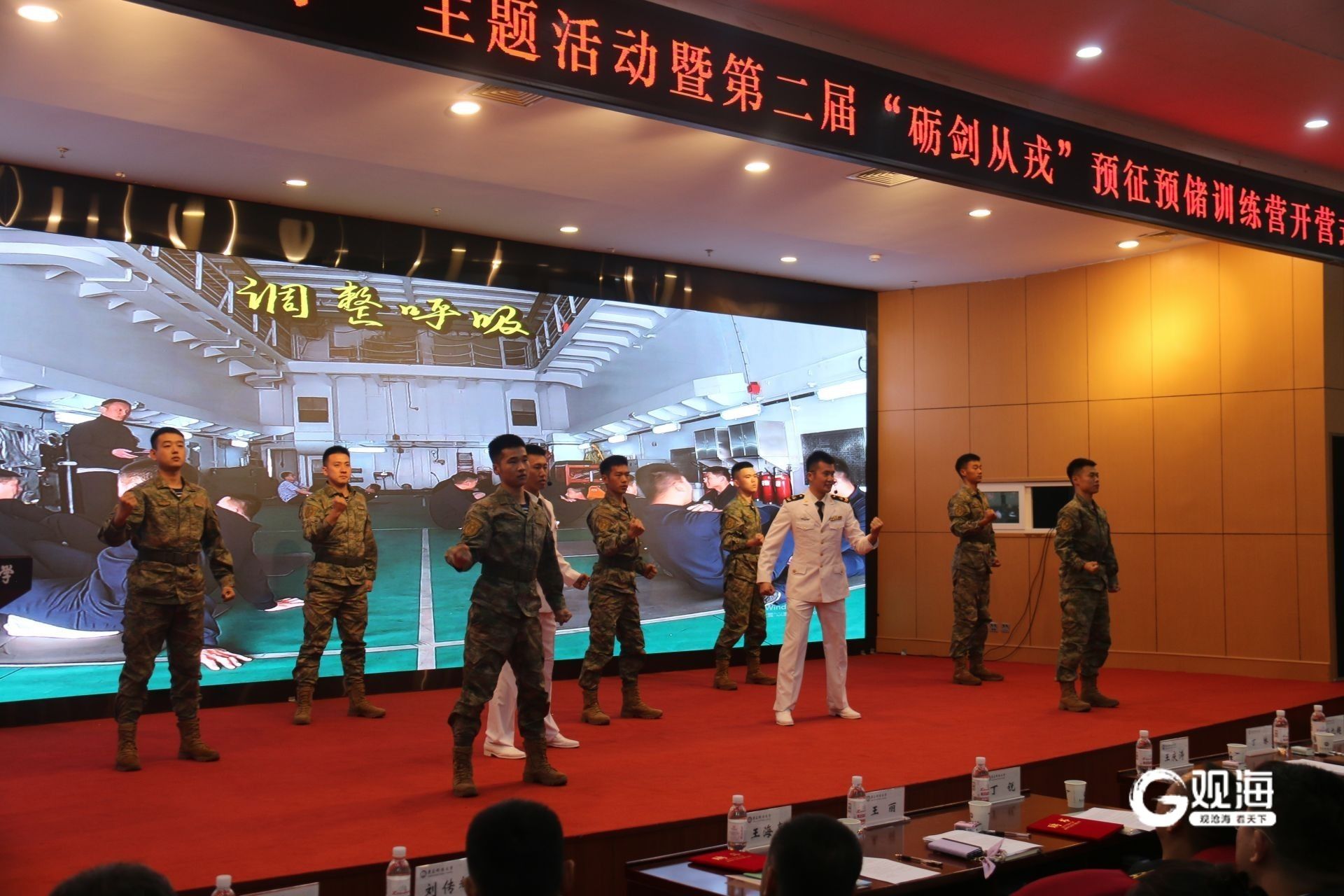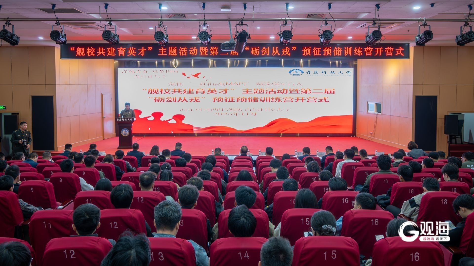 青岛日报社/观海新闻11月21日讯 “我志愿投身国防事业,用青春和热血报效祖国!”日前,青岛科技大学崂山校区第三报告厅内,103名预征预储学员的宣誓声响彻全场。这里正在举行“舰校共建育英才”主题活动暨第二届“砺剑从戎”预征预储训练营开营仪式。