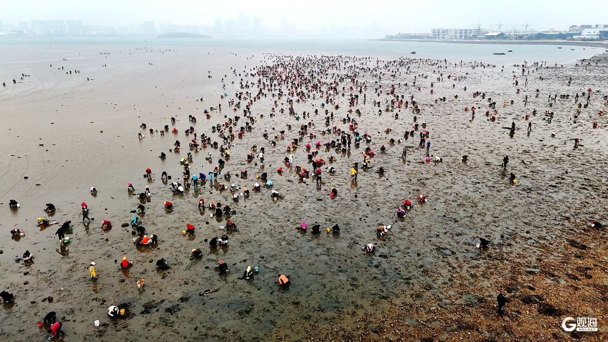 ●11月23日,青岛唐岛湾南岸潮退滩显,在中潮活汛加持下上演热闹赶海盛景,成千上万市民游客齐聚滩涂,开启海洋寻宝之旅。详情>>>