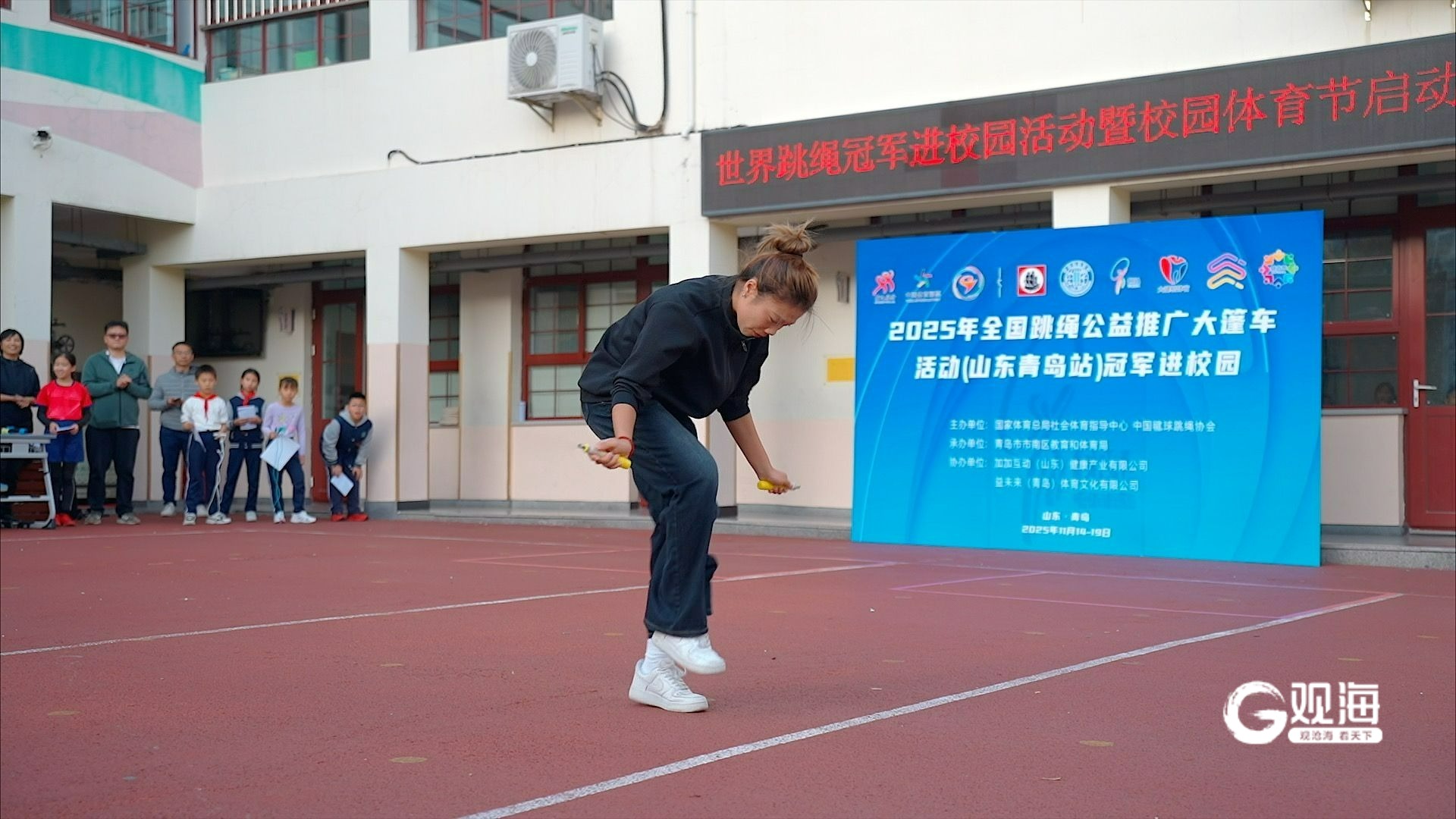 青岛日报社/观海新闻11月23日讯 “太厉害了,跳绳花样原来有这么多!”21日上午,2025年全国跳绳公益推广大篷车(青岛站)开进青岛莱芜一路小学丹东路校区,世界跳绳冠军的精彩展示引来师生阵阵惊叹。莱芜一路小学跳绳进校园活动是此系列活动的最后一站,其圆满结束意味着2025年全国跳绳公益推广大篷车(青岛站)正式收官。作为国家体育总局社会体育指导中心与中国毽球跳绳协会年度重点公益项目,青岛站系列活动首次与市南区“区长杯”中小学生体育联赛深度融合,覆盖1.2万名少年儿童,成为山东地区体教融合的又一标杆示范。