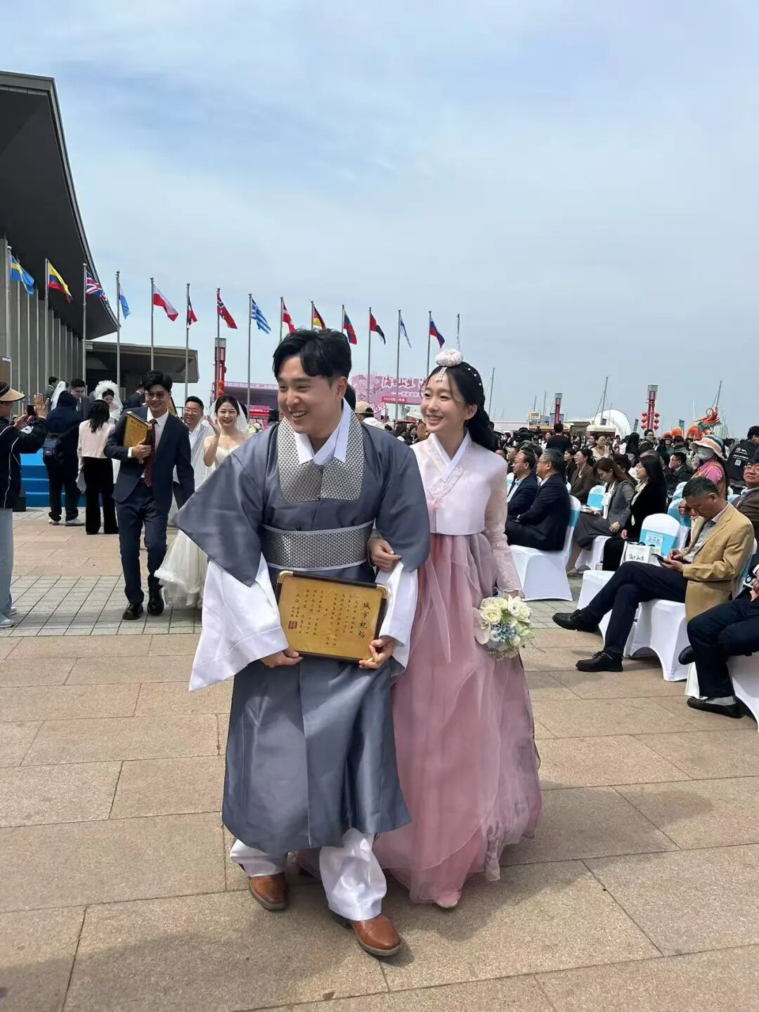 今年4月,在青岛举办的集体婚礼吸引外籍新人参加。