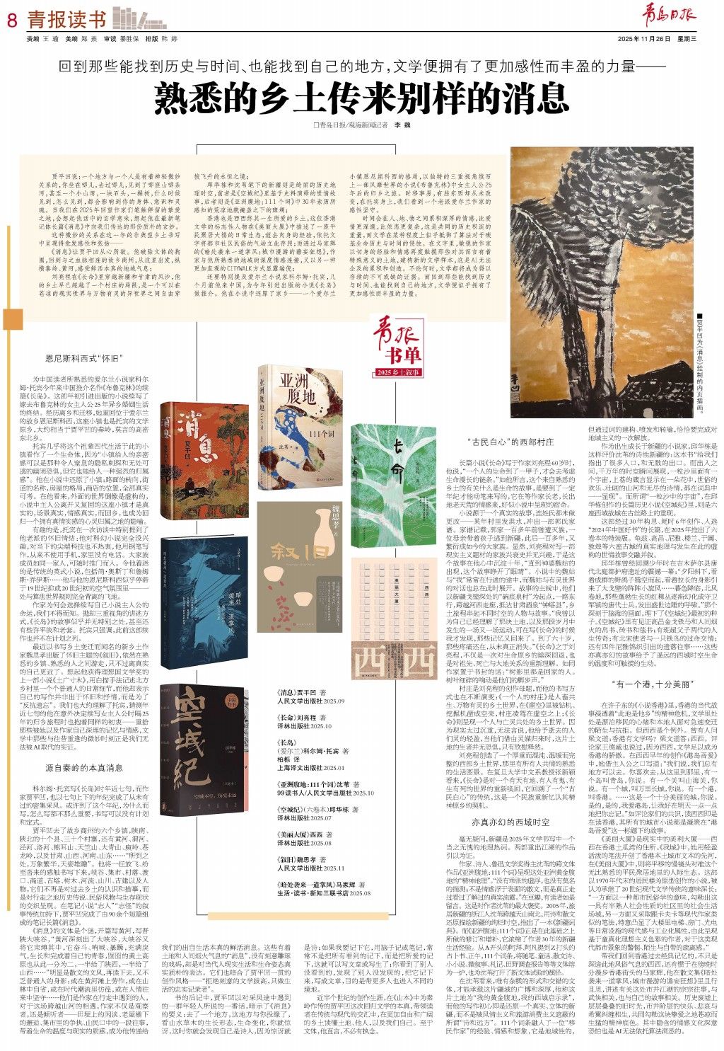 贾平凹说:一个地方与一个人是有着神秘微妙关系的,你坐在哪儿,去过哪儿,见到了哪座山哪条河,甚至一个小山湾,一块石头,一棵树,什么时候见到,怎么见到,都会影响到你的身体、意识和灵魂。当我们在2025年回望作家们笔触停留的挚爱之地,会想起他话中的玄学意味,想起他在最新笔记体长篇《消息》中向我们传达的那份质朴的玄妙。