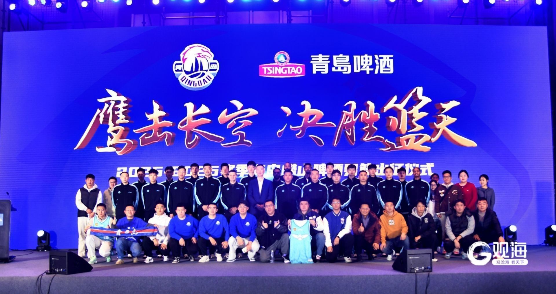 市人大常委会副主任、市总工会主席张建刚,市政府副市长赵胜村,市政府、市体育局、崂山区政府相关领导,青岛日报社、青岛市广播电视台、青岛市篮球协会、青岛啤酒、双星集团、李宁集团、国信集团相关领导嘉宾,以及青岛国信海天篮球俱乐部一队和青年队教练员、球员,媒体记者和球迷代表出席仪式,共同见证了这支承载着城市荣耀的球队,以崭新面貌与昂扬斗志开启新赛季!
