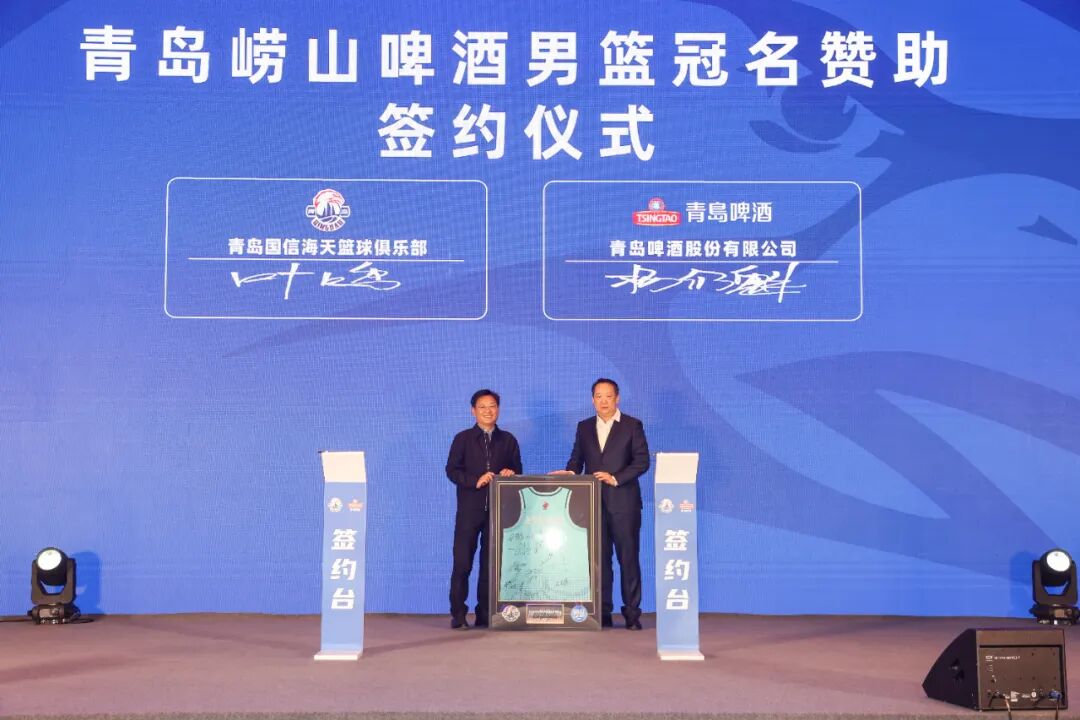 此外,在出征仪式上,青岛国信海天篮球俱乐部与青岛啤酒旗下品牌——“崂山啤酒”的冠名合作正式官宣,合作双方现场完成签约,青岛国信发展(集团)有限责任公司党委副书记邓友成向青岛啤酒股份有限公司营销总裁蔡志伟赠送球队签名球衣。