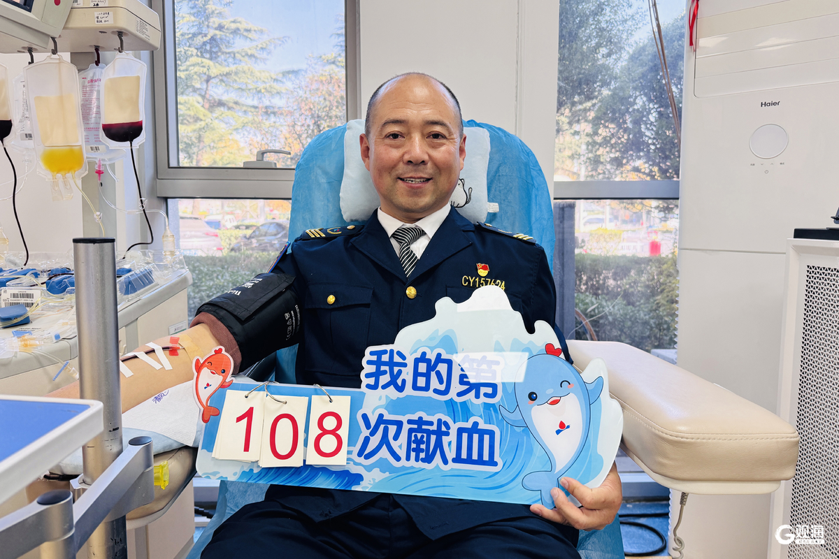 青岛日报社/观海新闻12月1日讯 “丁师傅,您又来献血了!您这得有一百多次了吧?”“嗯,加上今天,108次了。”11月26日,青岛城运西海岸温馨校车驾驶员丁敬保又一次来到血站,开始了他的第108次无偿献血。登记、测血压、验血……一系列流程之后,他安静地坐在椅子上,看着鲜血缓缓流入储血袋。