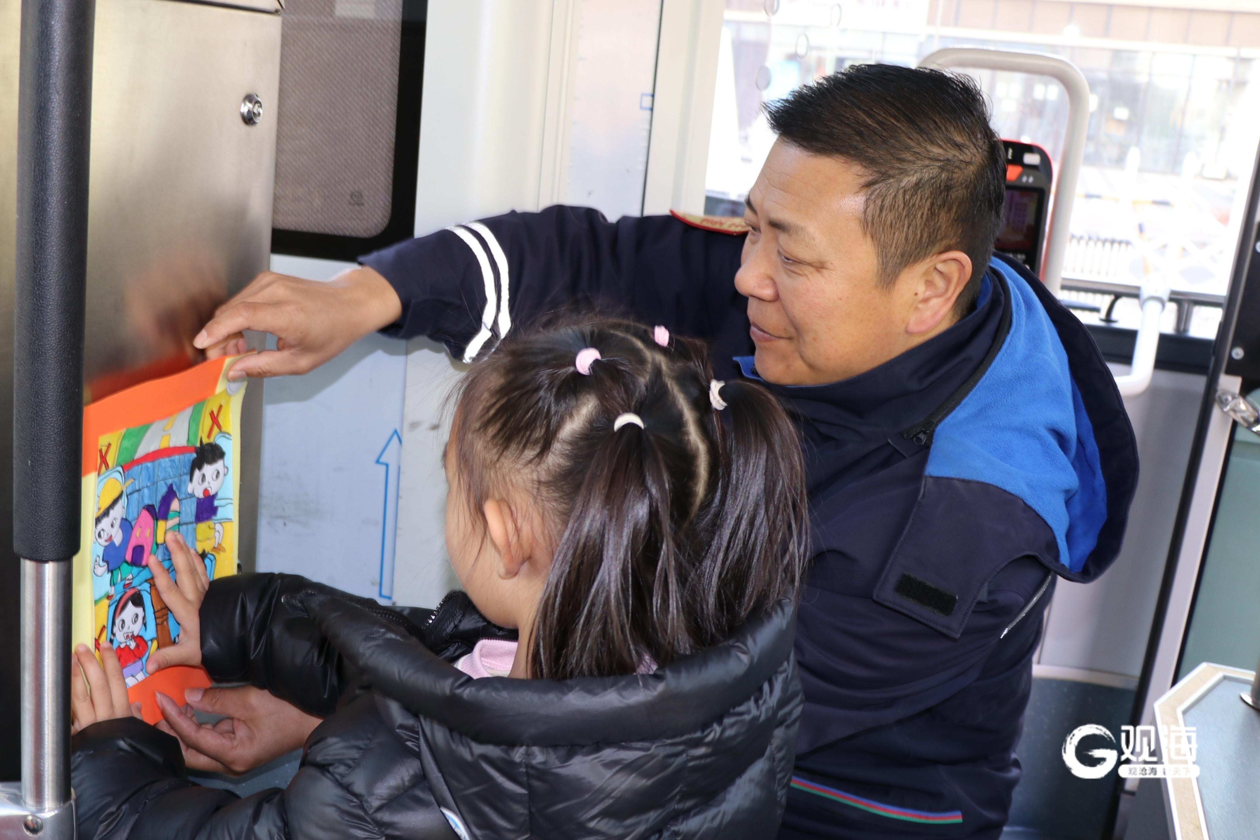 活动尾声,第七分公司的工作人员与孩子们一同动手,将车厢共同装点成一个移动的“交通安全课堂”。孩子们的画作被细心贴在车厢内,与色彩鲜明的交通标志贴纸、生动有趣的安全标语相映成趣。此刻,孩子们不仅是安全的学习者,更成为了小小的安全传播者,他们笔下的安全知识,将随着公交车驶入城市街巷,把文明的种子播撒到更多乘客心中。
