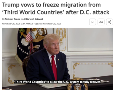 特朗普此次表态的核心,是要依托该移民法赋予总统的权力,暂停来自所谓“第三世界国家”的移民进入美国。与2017年“禁穆令”不同的是,此次政策口径范围明显更大,但并未给出具体国家清单,也未说明所谓“第三世界国家”的判定标准。这种模糊性令外界难以判断其政策边界,而其涵盖范围预计远超以往任何一项行政限制。