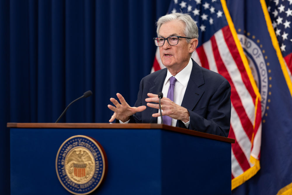 10月29日,美国联邦储备委员会主席鲍威尔在华盛顿出席记者会。新华社记者胡友松摄