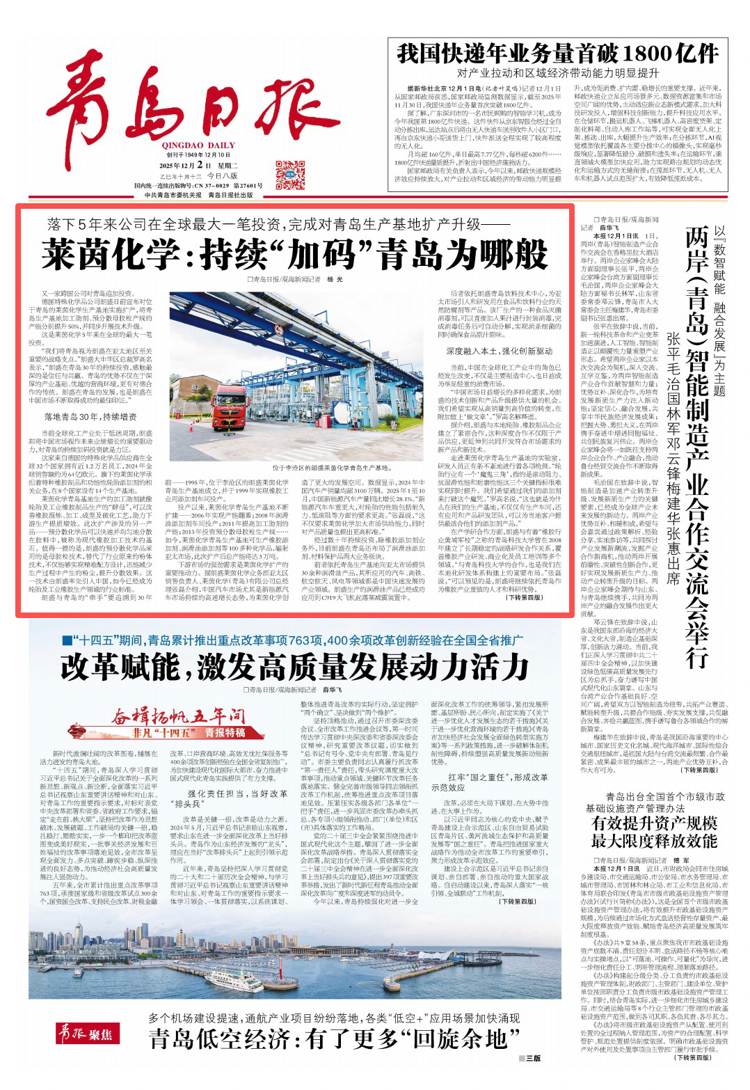 “我们将青岛视为朗盛在亚太地区至关重要的战略支点。”朗盛大中华区总裁罗高名表示,“朗盛在青岛30年的持续投资,感触最深的是信任与共赢。青岛的优势不仅在于深厚的产业基础、优越的营商环境,更有对德合作的传统。朗盛在青岛的发展,也是朗盛在中国市场不断取得成功的最佳印证。”