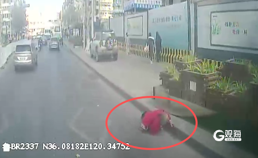 当日12时4分许,黄勇刚驾驶公交车从板桥坊开往天泰体育场方向,车辆行驶到威海路与郭口路附近时,发现一名七旬老人摔倒在马路边。车载监控画面显示,老人多次扶着道边石尝试起身,但未能成功。