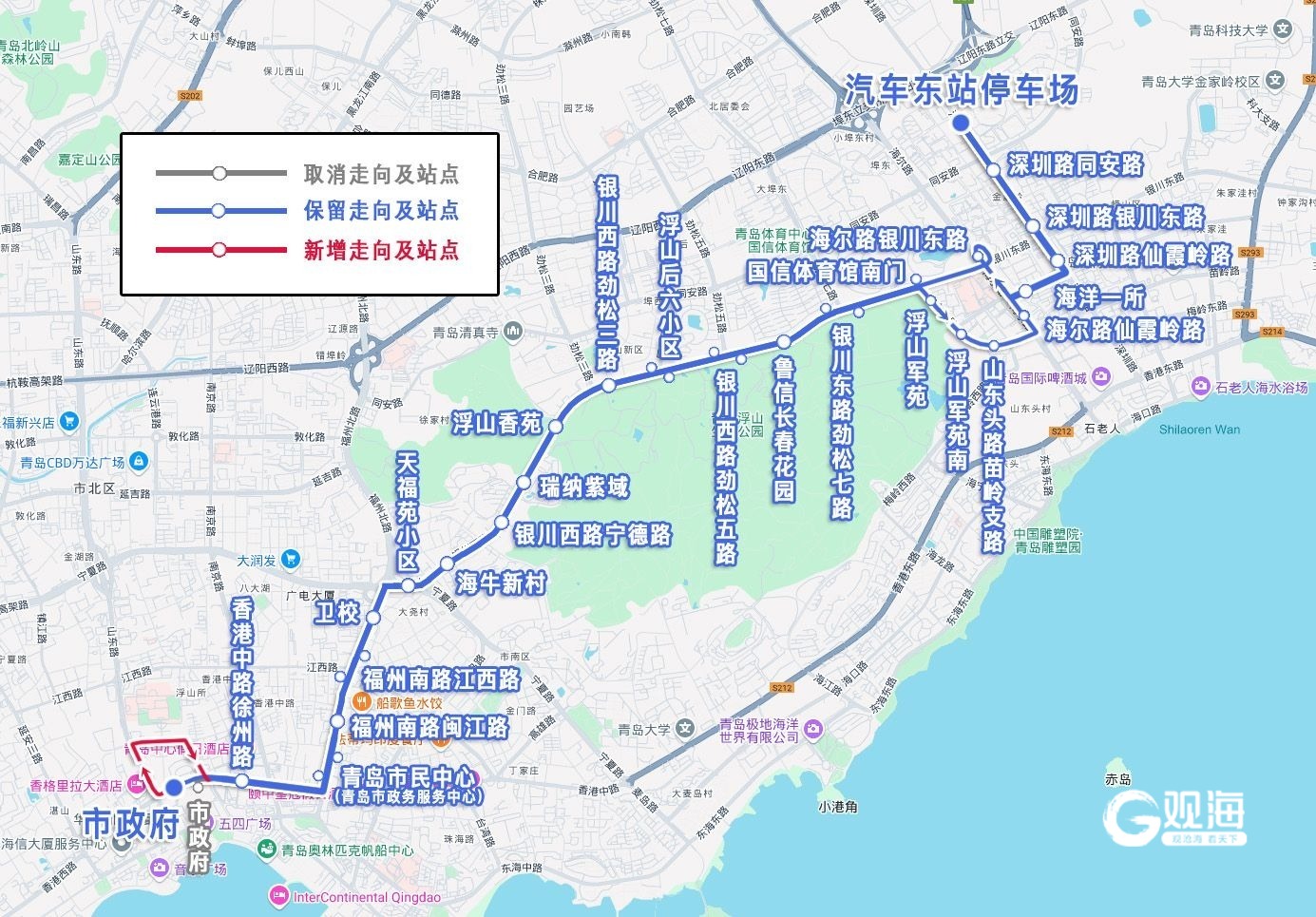 取消站:市政府(香港中路南侧)。