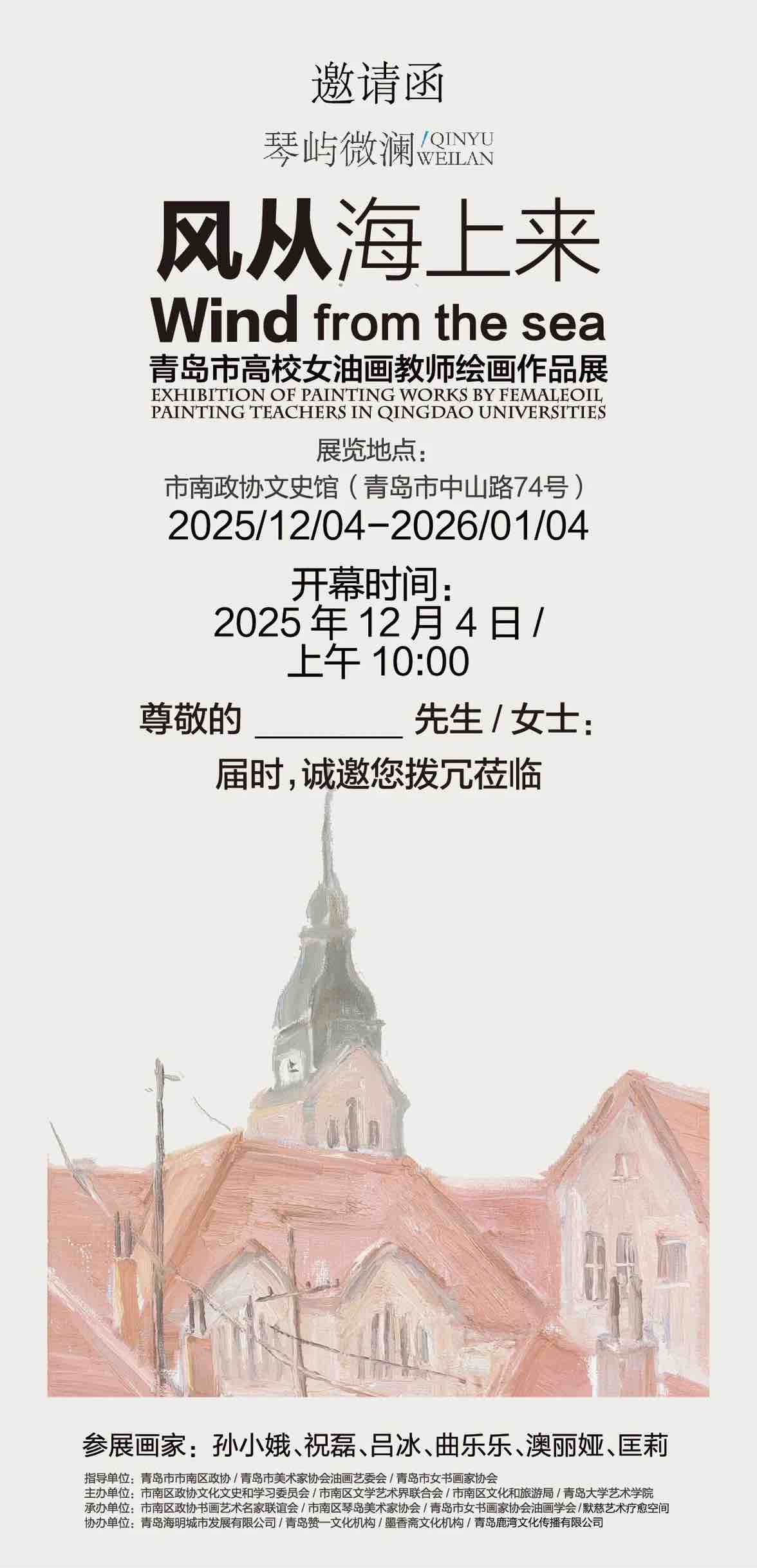 青岛日报社/观海新闻12月2日讯 12月4日,“风从海上来——青岛高校女油画教师绘画作品展”将在市南政协文史馆举办。