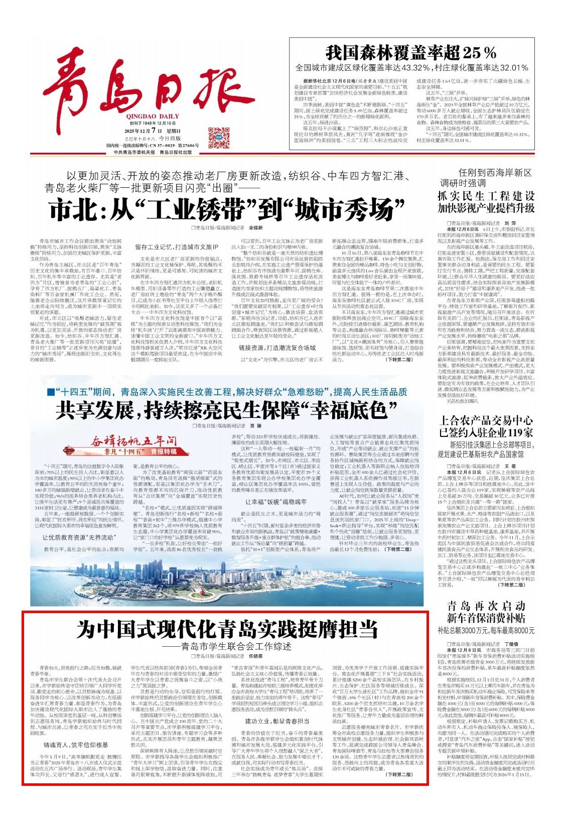 青春的价值在于担当,奋斗的青春最美丽。青岛市各级学联学生会组织紧扣时代脉搏和城市发展大局,搭建多元化实践平台,引导广大青年学生将个人理想融入“国之大者”,在服务人民、奉献社会、助力发展中增长才干、成就自我,用实际行动书写青春担当。