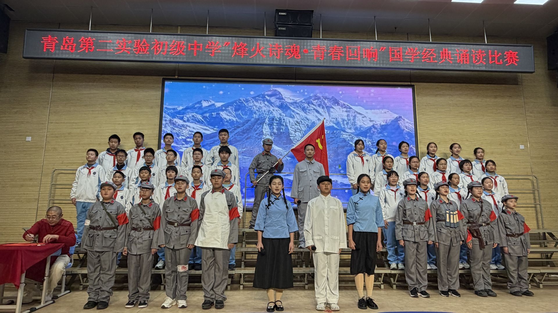 青岛日报社/观海新闻12月7日讯 诗韵流长,声动校园。与经典同行,我们聆听历史的回响;与时代共振,我们书写青春的诗行。近日,青岛第二实验初级中学“烽火噬魂 青春回响”国学经典诵读比赛拉开帷幕。2025级3班的全体师生,和家委会一起积极准备,精心排练,带来了铿锵有力的《万里长征》,不仅是文字的诵读,更是志向的抒发,和班级饱满精神面貌的呈现。