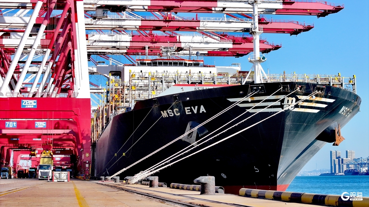 青岛日报社/观海新闻12月8日讯 岁末年尾冲刺全年“满堂红”的关键节点,山东港口青岛港再传捷报——12月8日,随着满载10612TEU的集装箱船舶“地中海伊娃”轮在前湾港区完成装卸作业,青岛港今年货物吞吐量累计突破7亿吨,较2024年突破7亿吨提前15天。今年,青岛港集装箱吞吐量已于11月26日突破3000万标准箱,国际航运枢纽竞争力指数稳居东北亚之首。