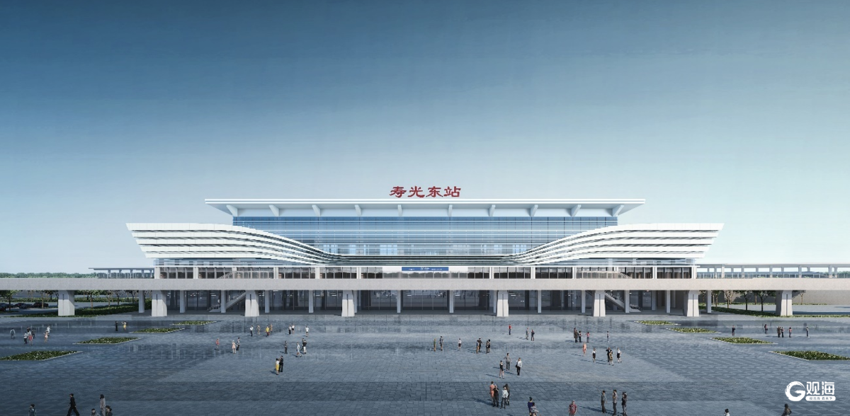 寿光东站位于山东省潍坊市寿光市,是津潍高铁沿线重要的中间站点,站房建筑面积约1.5万平方米,站场规模为2台4线,采用线侧平式设计,主体共三层,采用基本站台“平进下出”、中间站台“天桥进站、地道出站”的旅客流线模式。建筑造型深度融合寿光地域特色,灵感源自“蔬菜之乡”的大棚曲线与海盐文化的开阔意境,以舒展流畅的屋面线条勾勒出“沃野展翼”的灵动姿态。