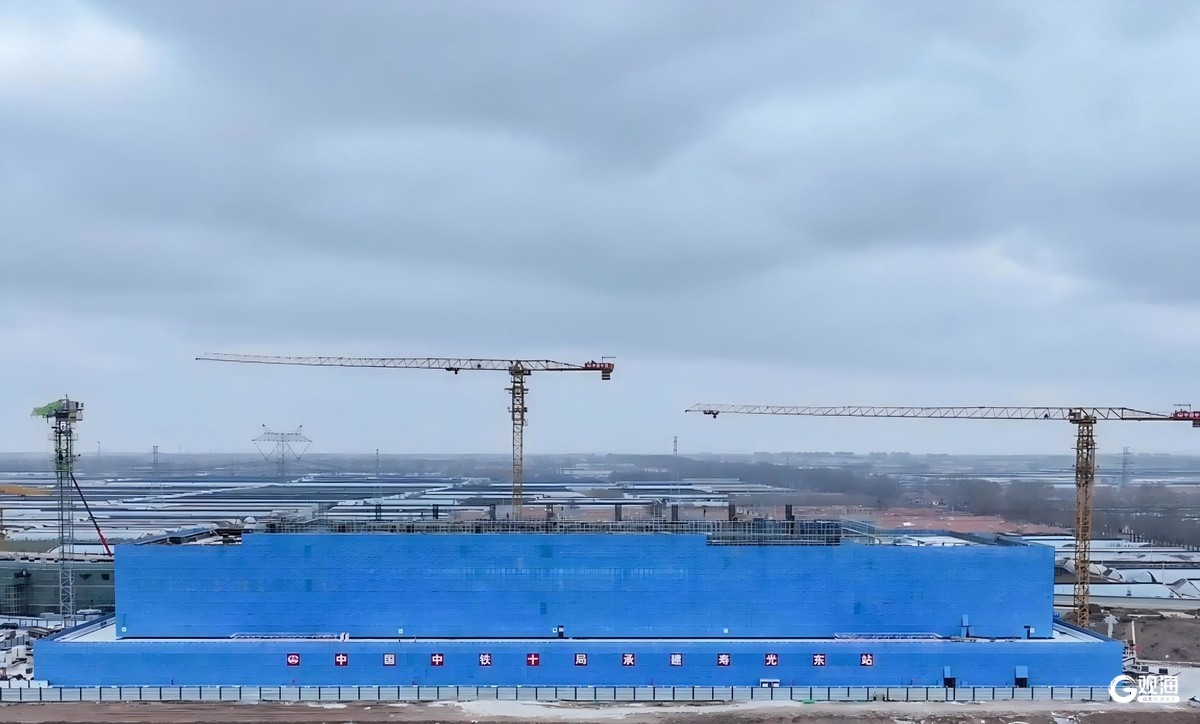 青岛日报社/观海新闻12月11日讯 12月10日,中铁十局承建的津潍高铁寿光东站站房工程主体结构顺利封顶,标志着项目建设实现阶段性突破,为后续装饰装修、机电安装及配套施工奠定坚实基础。