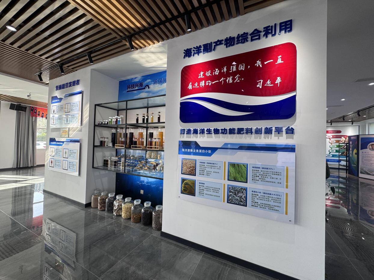在烟台固特丽生物科技股份有限公司的展厅内,来自虾蟹壳、鱼皮、海藻等加工废料经过一系列生物转化,变成了琳琅满目的海藻酸钠、壳寡糖、鱼蛋白肽等高附加值产品。采访团成员对这套“变废为宝”的循环经济模式表现出浓厚兴趣。