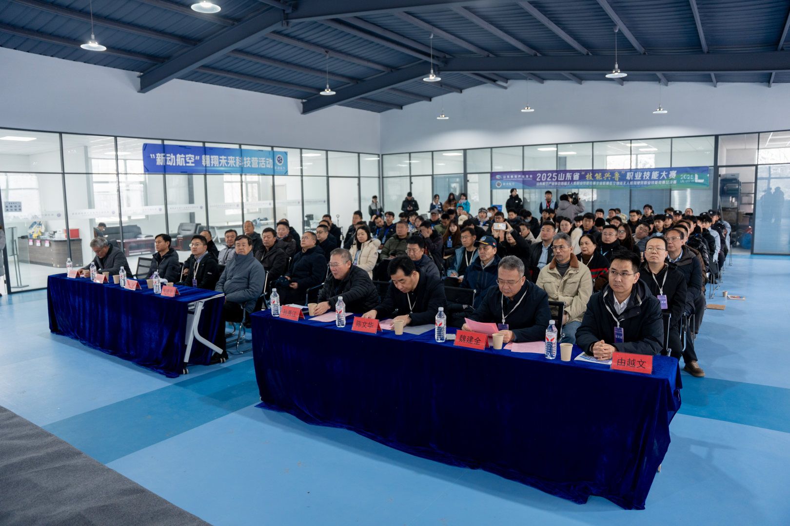 山东航空产业协会理事长,山东省政协第十三届常委、经济委员会副主任孙秀江,青岛市教育发展基金会理事长何建平,胶州市总工会党组书记、常务副主席陈文华,胶州市交通运输局党组副书记、副局长魏建全,青岛国际机场集团有限公司原党委委员、纪委书记姜海波等领导共同出席大赛开幕式。山东航空产业协会高级顾问赵敬波宣布大赛开幕。来自行业协会、企业、高校、科研院所等低空经济有关单位的嘉宾和裁判员代表、全省入围总决赛选手代表等100余人参加开幕式,活动由青岛新动航空科技发展有限公司董事长王宝广主持。
