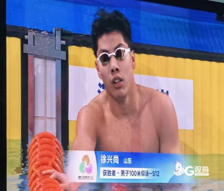 游泳项目再添2金1铜。19岁小将徐兴尚在男子100米仰泳S12级决赛中以1分02秒49夺冠,再度刷新全国纪录,这也是他本届赛事的第七枚金牌。鲍明齐在女子100米仰泳S12级决赛中夺金。此外,张蒙、刘宗辉与队友在男女4×100米混合泳接力-34分比赛中协力再获一枚铜牌。
