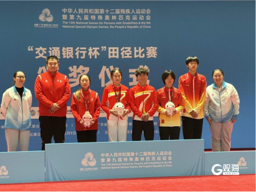 唐瑜桐(左四)摘得女子跳远T12级金牌